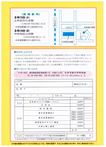 大牟田児童文学セミナーにつきまして、会期が近づき問い合わせが増えてきましたので、、協会窓口お申込み以外(会場アクセスの心配、駐車場の心配など)はお応えすることにしました。